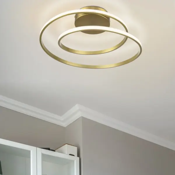 Illuminate your home with the captivating Alston Double Ring Built in, Integrated LED Modern Ceiling Flush Light. With its striking brushed brass finish, this modern luminaire and a captivating metal flush mount that casts a beautiful glow. This fixture ensures brilliant lighting throughout your room. Whether in living rooms, dining areas, or bedrooms, this fixture seamlessly integrates with modern, contemporary, or Scandinavian decor, enhancing its aesthetic appeal.