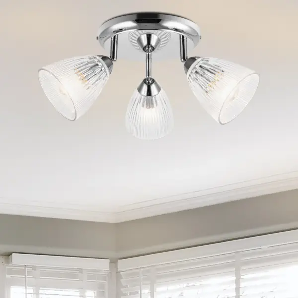 Elevate your space with the exquisite Athella Bathroom 3 Light Modern Ribbed Glass Spotlight. This modern lighting fixture boasts a sleek chrome finish, featuring a stylish glass spotlight designed to enhance any ambiance. Designed for E14 bulbs, this fixture ensures brilliant lighting throughout your room. A perfect addition to bathrooms or ensuites, its design harmonizes beautifully with modern, contemporary, or Scandinavian settings, creating an inviting atmosphere.