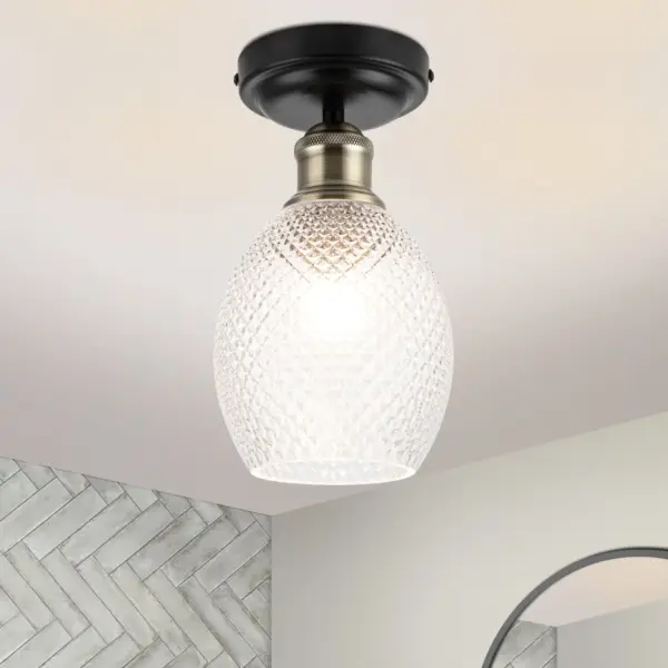 Transform your interior with the elegant Auburn Bathroom Classic Faceted Glass Ceiling Flush Light. This classic lighting fixture boasts a sleek matt black finish, its unique glass flush mount creating a mesmerizing play of light and shadow. Experience perfect brightness with its E27 bulb compatibility, offering versatile lighting solutions. Ideal for bathrooms or ensuites, it perfectly complements traditional, classic, or transitional interior styles, adding a touch of sophistication and charm.