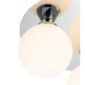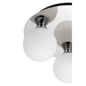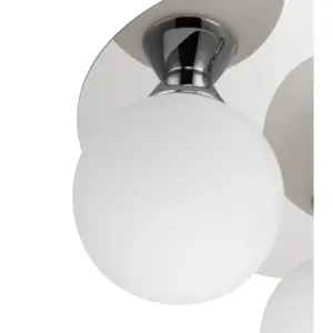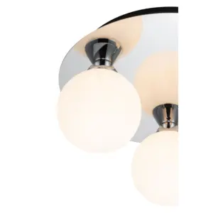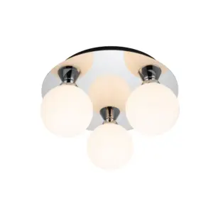 Introducing the stunning Bowen Bathroom 3 Light Classic Opal Glass Ceiling Flush Light. This classic lighting fixture boasts a sleek chrome finish, its unique glass flush mount creating a mesmerizing play of light and shadow. It provides ample illumination for any space. A perfect addition to bathrooms or ensuites, its design harmonizes beautifully with traditional, classic, or transitional settings, creating an inviting atmosphere.