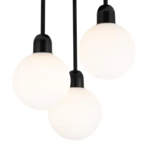 Matt black metal canopy and lampholder cup, Durable opal glass shades