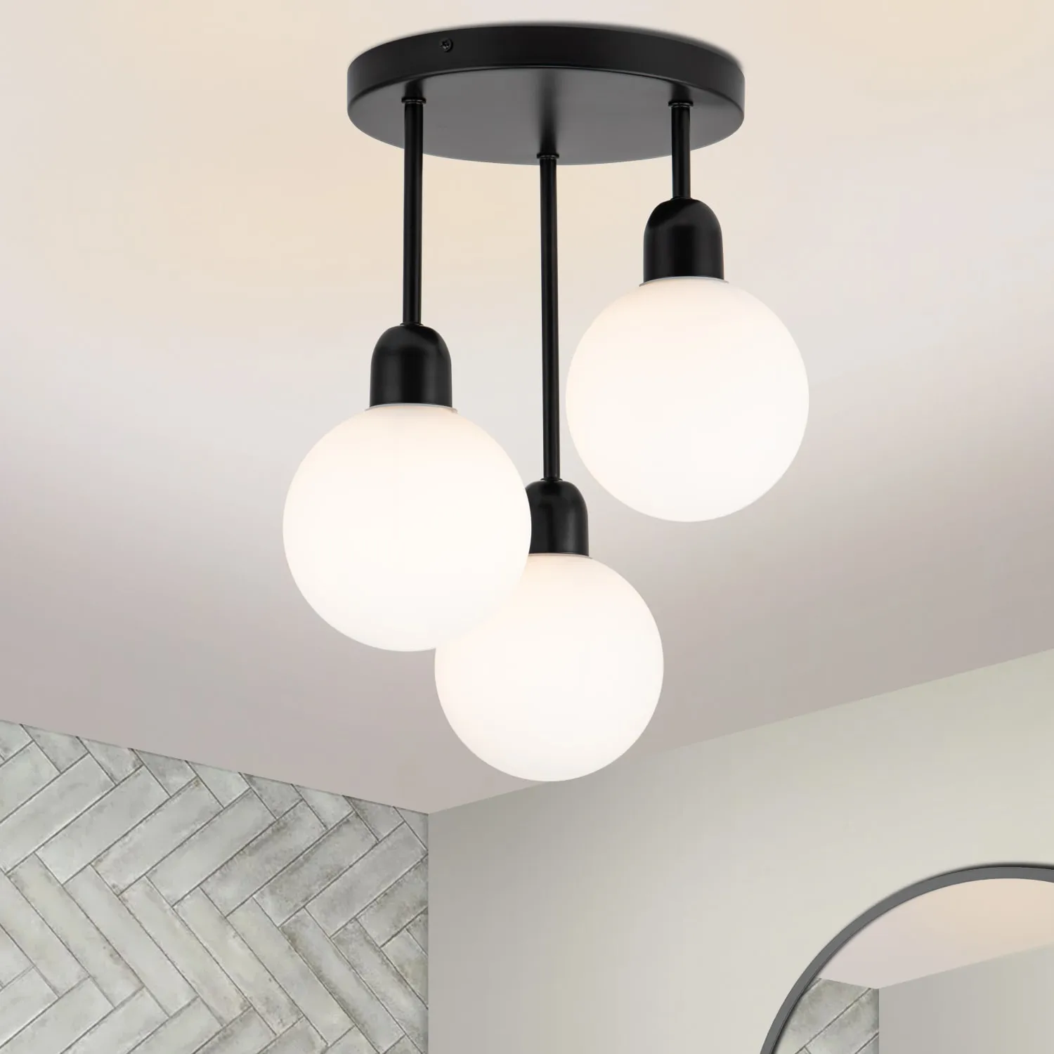 Illuminate your home with the captivating Broome Bathroom 3 Light Modern Opal Glass Ceiling Light. Crafted with a matt black finish, this modern piece its unique glass creating a mesmerizing play of light and shadow. Experience perfect brightness with its E14 bulb compatibility, offering versatile lighting solutions. A perfect addition to bathrooms or ensuites, its design harmonizes beautifully with modern, contemporary, or Scandinavian settings, creating an inviting atmosphere.