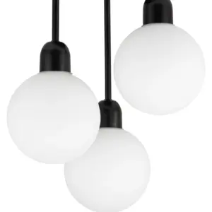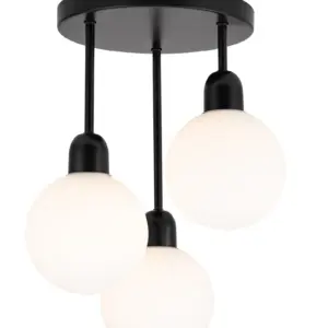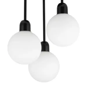 - Matt black metal canopy and lampholder cup, Durable opal glass shades
