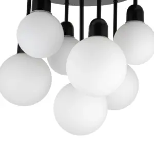 • Matt black metal canopy and lampholder cup, Durable opal glass shades