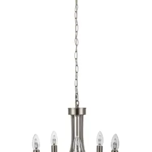 Discover the charm of the Elmore 5 Light Traditional, Classic Metal Pendant Light. This classic lighting fixture boasts a sleek brushed nickel finish, complemented by a distinctive pendant that diffuses light with elegance. Designed for E14 bulbs, this fixture ensures brilliant lighting throughout your room. Whether in living rooms, dining areas, or bedrooms, this fixture seamlessly integrates with traditional, classic, or transitional decor, enhancing its aesthetic appeal.