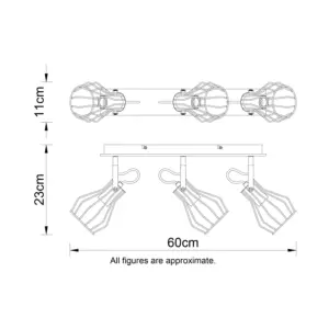 Transform your interior with the elegant Kendan 3 Light Industrial Matt Black Wire Shade Spotlight with Wooden Backplate. A true testament to industrial design, it features a refined matt black finish, complemented by a distinctive wire spotlight that diffuses light with elegance. Experience perfect brightness with its E14 bulb compatibility, offering versatile lighting solutions. Whether in living rooms, dining areas, or bedrooms, this fixture seamlessly integrates with industrial, minimalist, or modern rustic decor, enhancing its aesthetic appeal.