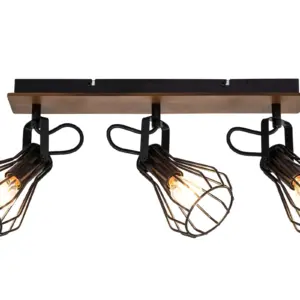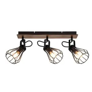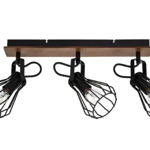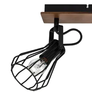 COSYLYTE Kandan 3 Light Matt Black Wire Shade Spotlight with Wooden Backplate