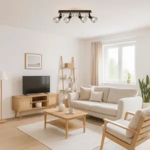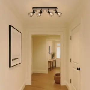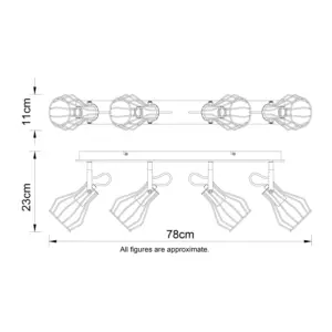 Introducing the stunning Kendan 4 Light Industrial Matt Black Wire Shade Spotlight with Wooden Backplate. Crafted with a matt black finish, this industrial piece complemented by a distinctive wire spotlight that diffuses light with elegance. Designed for E14 bulbs, this fixture ensures brilliant lighting throughout your room. Whether in living rooms, dining areas, or bedrooms, this fixture seamlessly integrates with industrial, minimalist, or modern rustic decor, enhancing its aesthetic appeal.