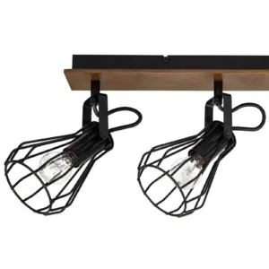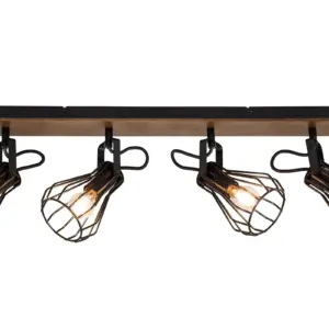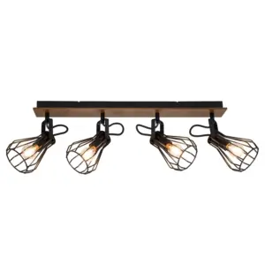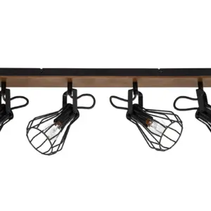 COSYLYTE Kendan 4 Light Matt Black Wire Shade Spotlight with Wooden Backplate