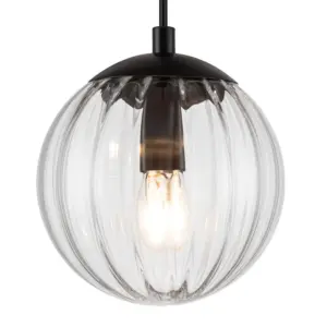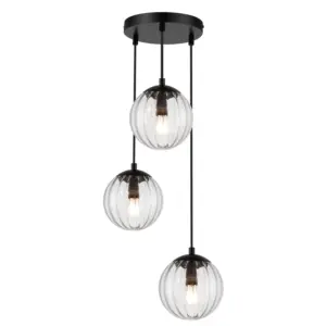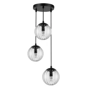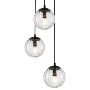 Elevate your space with the exquisite Kingston 3 Light Modern Clear Ribbed Glass Cluster Pendant Light. A true testament to modern design, it features a refined matt black finish, complemented by a distinctive glass pendant that diffuses light with elegance. Compatible with E14 bulbs, it provides ample illumination for any space. Whether in living rooms, dining areas, or bedrooms, this fixture seamlessly integrates with modern, contemporary, or Scandinavian decor, enhancing its aesthetic appeal.