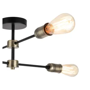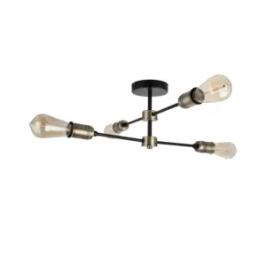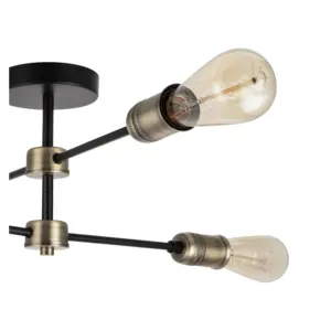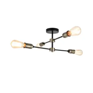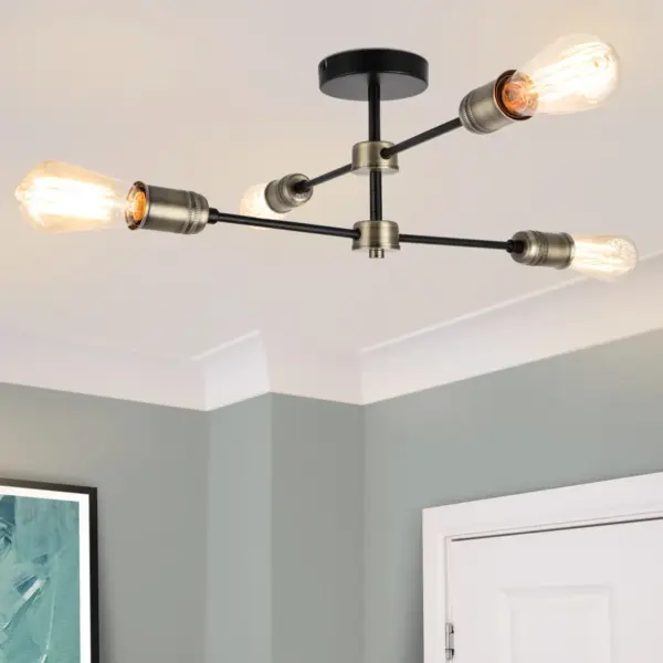 Elevate your space with the exquisite Linton Industrial 4 Light Modern Matt Antique Brass Adjustable Arm Ceiling Light. This industrial lighting fixture boasts a sleek matt black finish, complemented by a distinctive that diffuses light with elegance. Designed for E27 bulbs, this fixture ensures brilliant lighting throughout your room. Whether in living rooms, dining areas, or bedrooms, this fixture seamlessly integrates with industrial, minimalist, or modern rustic decor, enhancing its aesthetic appeal.