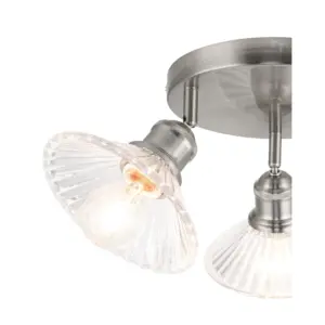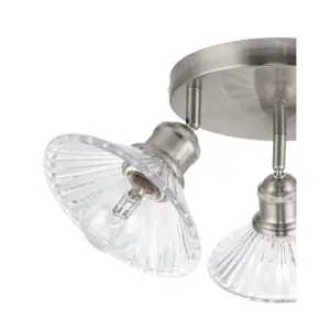 Brushed nickel metal canopy and jointer, Durable clear ribbed glass shades