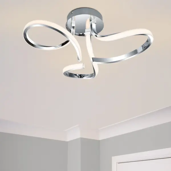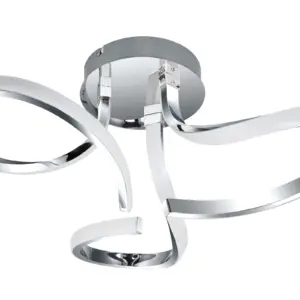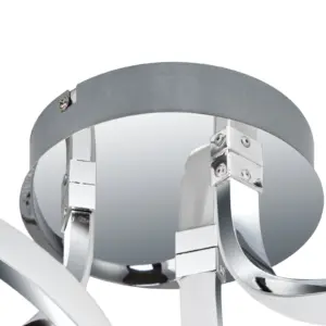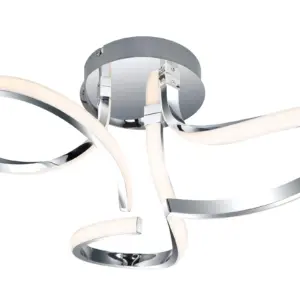 Transform your interior with the elegant Moss 3 Light Built-in, Integrated LED, Modern Curved Ceiling Light. This modern lighting fixture boasts a sleek chrome finish, featuring a stylish metal designed to enhance any ambiance. It provides ample illumination for any space. A perfect addition to living rooms, dining areas, or bedrooms, its design harmonizes beautifully with modern, contemporary, or Scandinavian settings, creating an inviting atmosphere.