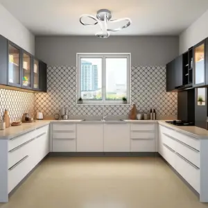 Chrome metal decor plate and arms, Features a modern, curved design