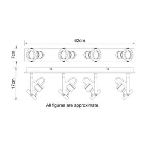 Transform your interior with the elegant Riverton 4 Light Industrial Matt Black Spotlight with Walnut Finish Wooden Backplate. With its striking matt black finish, this industrial luminaire its unique metal spotlight creating a mesmerizing play of light and shadow. Experience perfect brightness with its GU10 bulb compatibility, offering versatile lighting solutions. Whether in living rooms, dining areas, or bedrooms, this fixture seamlessly integrates with industrial, minimalist, or modern rustic decor, enhancing its aesthetic appeal.