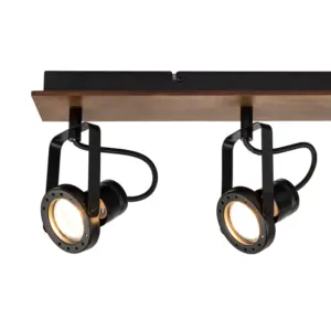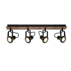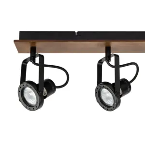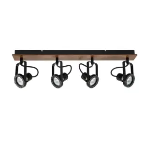 COSYLYTE Riverton 4 Light Matt Black Spotlight with Walnut Wooden Backplate