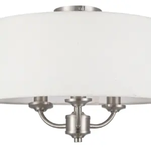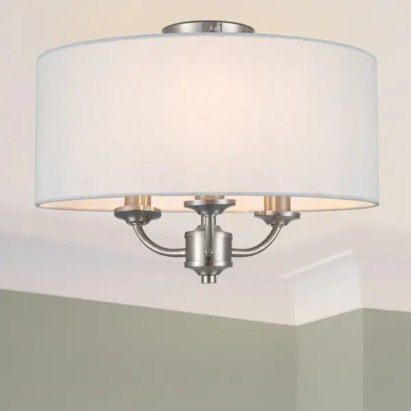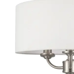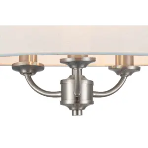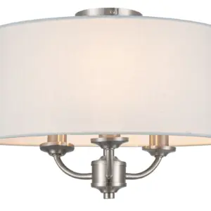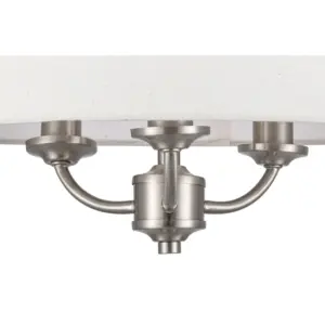 Transform your interior with the elegant Winston 3 Light Classic Ceiling Light with Faux Linen Outer Shade. Crafted with a brushed nickel finish, this classic piece featuring a stylish metal shade designed to enhance any ambiance. Compatible with E14 bulbs, it provides ample illumination for any space. A perfect addition to living rooms, dining areas, or bedrooms, its design harmonizes beautifully with traditional, classic, or transitional settings, creating an inviting atmosphere.