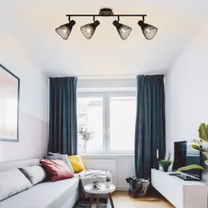 COSYLYTE Hadley 4 Light Matt Black Wire Shade Spotlight with Wooden Backplate