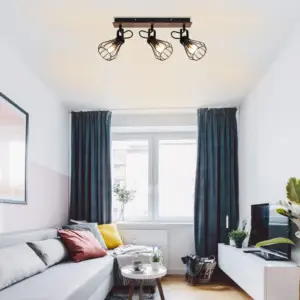 COSYLYTE Kendan 3 Light Matt Black Wire Shade Spotlight with Wooden Backplate